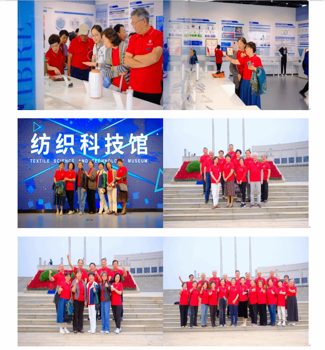座谈会后,校友们在师生陪同下参观了纺织科技馆,并漫步校园,在教学楼、图书馆、运动场前合影留念,进一步感受母校的发展变迁。