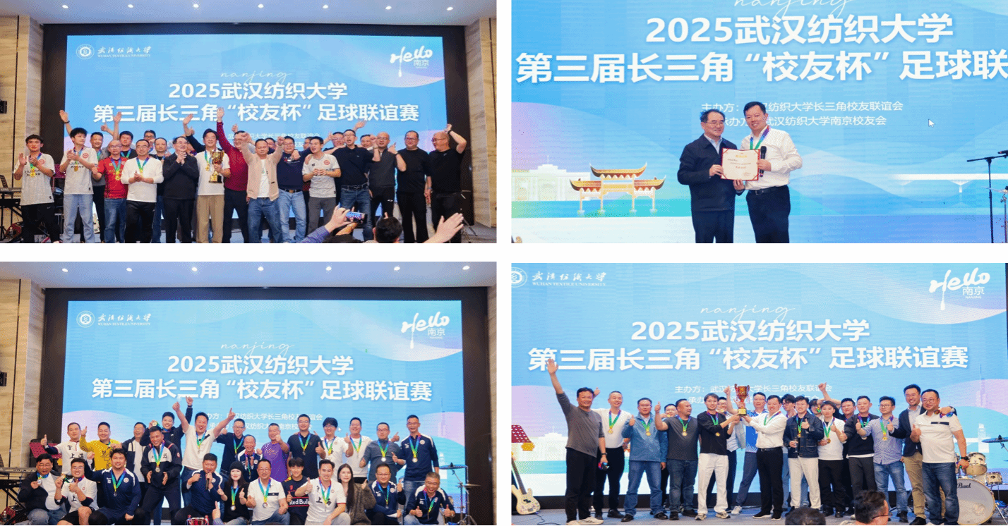 10月25日,由南京校友联谊会承办的武汉纺织大学第三届长三角“校友杯”足球联谊赛在南京成功举办。学校校友会会长田辉玉教授,体育部副部长姜铁汉等教师代表,长三角各地校友组建的6支校友球队,以及来自大湾区等全国各地校友代表共计200余人参加了活动。