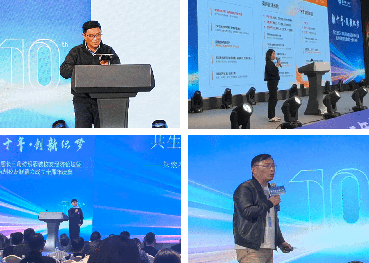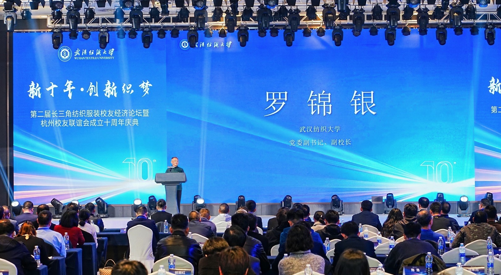 11月29日,武汉纺织大学第二届长三角纺织服装校友经济论坛暨杭州校友联谊会成立十周年庆典在杭州成功举办。学校党委副书记、副校长罗锦银出席活动并致辞,校友会会长田辉玉视频连线表达问候,纺织学院、管理学院、服装学院、校友处等单位负责人和专家学者,以及来自长三角、大湾区及全国各地350余名校友参加了活动。
